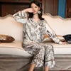 Floral Printed Satin Pajamas Set Women Loungewear 2Pcs Long-Sleeve Stretchy Loose Luxury Nightwear Sleepwear