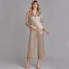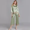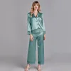 Women Stain Pajama Sets Elegant Silk Like Glossy Long Sleeve Top and Pants with Lace Nightwear Ladies Homewear Loungewear
