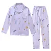 Women Cotton Gauze Pajamas Long Sleeve Spring Pajama Set Purple Lavender Print Sleepwear 2 Piece Casual Loose Sexy Nightwear