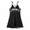 New Women's Pajamas Lace Satin Sexy Rhinestone Shiny Shoulder Strap Beautiful Back Suspender Nightdress Hot Diamond Home Clothes