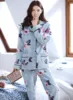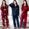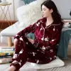 2 Pieces Winter Women Thicken Warm Soft Pajamas Female Flannel Pajamas Set Long Sleeve Sleepwear for Girls Ladies Pyjamas