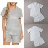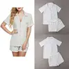 Summer Women's Pajamas Set Short Sleeves Sleepwear Tops+Pants Homewear Nightwear