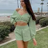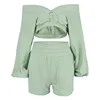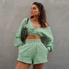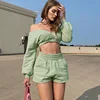 Fall/Winter Hot-Selling Women's Cropped V-neck off-Shoulder Long-Sleeved Sweater Sports Shorts Two-Piece Suit
