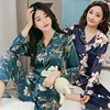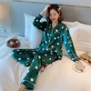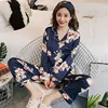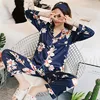 2020 Summer Autumn Long Sleeve Silk Satin Print Pajamas Sets For Women Sleepwear Suit Pyjamas Homewear Home Clothes