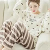Winter Kawaii Pajamas Women Coral Velvet Pyjamas Sets Thick Flannel Sleepwear for Teens Pink Warm Long Sleeve Cartoon Home Wear