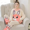Winter Flannel Pajamas for Women Rabbit Cartoon Pyjamas Warm Pijama Coral Velvet Sleepwear Pants Pink Loungewear Femme Nighty