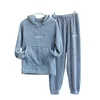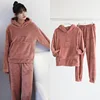 Two Piece Sets Sleepwear Women Solid Loose Home Warm Thick Hooded Comfort Pants Fall/Winter Fashion Breathable Casual Pajama Set
