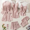 Women Pajamas 5PCS Pajamas Sets Satin Sleepwear Pijama Silk Home Wear Clothing Sexy Lace Sleep Lounge Pyjamas with Chest Pads