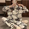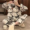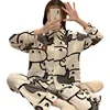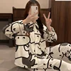 New Women's Cow Print Pajamas Set Spring and Autumn Style Female Sleepwear Long Sleeve Trousers Sleep Bottom Thin Style Homewear