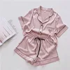 Silk Pajamas for Women Home Suit Heart Embroidered Pyjamas Pj Set Satin Nightwear Sleepwear 2020 Pijama Verano Mujer