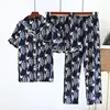 2021 New Women's Spring And Summer100%Viscose Pajamas Three-piece Short Sleeve + Shorts + Trousers Soft And Comfortable Homewear