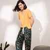 Breathable 2PCS Pajama Short Sleeve Printed Pijama Mujer Femme Loose Nightwear Suit Female Casual Homewear Pajama Set For Women