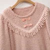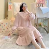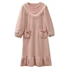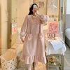2021 French Nightdress Women's Winter Coral Velvet Long Sleeve Round Neck Pullover Pajamas Thickened Warm Home Clothes Kawaii