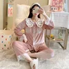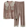 2021 Autumn Winter Korean Sweet Lace Golden Velvet Pajamas Women's Long Sleeve Loose Large Home Clothes Pants Set Temperament
