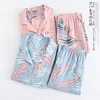 2021 kimono femme maple leaf pajama sets women 100% gauze cotton long sleeve casual sleepwear women pyjamas autumn hot sale