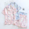 Japanese simple short pyjamas women 100% cotton short sleeves ladies pajama sets shorts Cute cartoon sleepwear women homewear