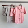 Summer Pajamas for Women Satin Silk Striped Sleepwear 2 Pieces Set Sleep Tops Pants Pjs Ladies Night Wear Loungewear Home Suit