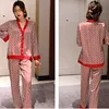 Spring Summer Long Sleeve Pajamas Overall Print Women Silk Pajama Set Soft Satin Sleepwear Sexy V-Neck Pijama Home Suit