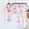 2021 New Women's Spring And Summer100%Viscose Pajamas Three-piece Short Sleeve + Shorts + Trousers Soft And Comfortable Homewear