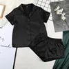 Women Sleepwear Summer Pajama Set Pink Turn Down Collar Faux Silk Satin Blue Short Sleeve Casual Female Pijama Home Wear Shorts