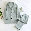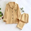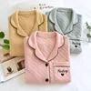 Autumn/winter Women Pajamas Set Solid Color Air Layer Thickened Cotton Long Sleeve Ladies Sleepwear Simple Loose Comfy Home Suit
