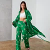 Fashionable Home Nightgown European and American Style Pajamas Women's Long-Sleeved Lengthened Trousers Clothing Printed