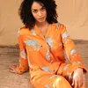 Women's Silk Loose Pajamas Long Sleeve New Product Set Home Wear Simulation Bridal Autumn Printed Trousers 2021 Comfortable