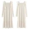 Nightdress women's spring autumn long-sleeved nightdress palace style long dress Princess ladies home wear White nightgown