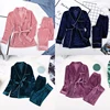 Warm Velvet Sleepwear Solid Robes And Pants Home Suit Pocket Long Sleeve Home Clothes For Women Pajama Woman Winter 2020