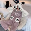 Flannel Warm Pajamas Set Top+pants 2pcs For Women Panda Sleepwear Cartoon Animal Pyjama Women Full Sleeve Nightwear Home Clothes
