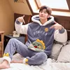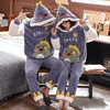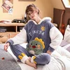 Women Man Pajamas Couple Hoodie Pajamas Suit Winter Thicken Clothes Adult Cartoon Dinosaur Cute Sleepwear