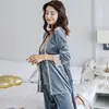 Sleepwear women Robe Sets Autumn Winter Gold Velvet Three Sets of Long-sleeved Sexy Suspenders Large Size Women Suit Pajama Sets