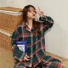 Pajama Sets Sleepwear 2021 New Christmas Green Plaid Pajamas Spring and Autumn Sweet Casual Suit Girls Loose Simple Long-sleeved