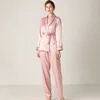 Pajamas Set Women's Silk Long Sleeve Robes with Long Pants High-grade Womens Pajamas Set Solid Color Lace Two-piece Pjs Women