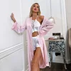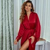 X-BEAU Women Silk Satin Night Robe Long Sleeve Solid Robes Fashion Bath Robe Sexy Bathrobe Female Wedding Bride Bridesmaid Robe