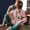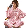 Pajamas Women's Flannel Winter Thickened Long-sleeved Cardigan Lapel Warm Home Service Two-piece Suit Pajama Set Women Sleepwear