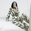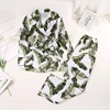 Banana Leaf Robe Sets Long Sleeve Satin Pajamas Tropical Graphic 2 Piece Set Women Sleepwear Home Suit Sets Bathrobe 2020