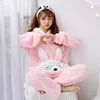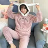 Women Pajama Set Winter Thicken Two-piece Sleepwear Cartoon Black Bear Flannel Soft Nightwear Hoodies