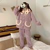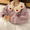 Winter Flannel Pijama Set Women Pink Coral Velvet Pajamas Thick Floral Sleepwear Plants Kawaii Nightwear Teen Girls Lounge Wear