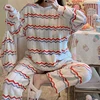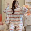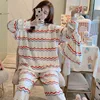 Stripe Flannel Women Pajamas Plants Sleepwear Winter Warm Pijamas Velvet Femme Lounge Home Wear 2 Pac/set Nighty Nightwear