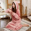 Winter Flannel Long Nightgowns for Women Thick Home Clothing Warm Negligee Cute Sleepwear Nightdress Plus Size Nightwear Pink