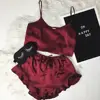 Women Sexy V neck Lingerie Pajama Set Crop Top Vest Shorts Sleepwear Satin Silk Babydoll Lace Nightwear Set