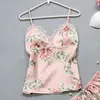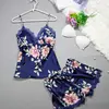 Women Sexy Floral 2PCS Lingerie Pajamas Set Sling Lace Deep V-Neck Top Short Elastic Band Pants Summer Sleepwear Set