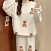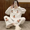 Kawaii Bear Pijamas Set Women Winter Long Sleeved Sleepwear Flannel Coral Fleece Costume Party Cute Outwear Girls Anime Pajamas
