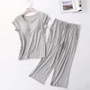 Sexy Women Modal Bra-T New Pajamas Sets Padded Top Pants All Match Comfortable Pink Sleepwear Solid Short Lingerie