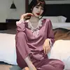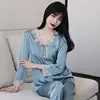 Lace Pj's 2PCS Sleepwear Women Satin Pajamas Suit Summer Pyjamas Casual Intimate Lingerie Long Sleeve Lounge Wear