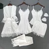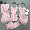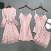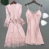 Sleepwear Women Satin Kimono Robe Gown Lace Intimate Lingerie V-Neck Sleep Set Strap Nightgown With Pads Nightwear Pajamas