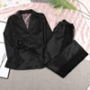 Sexy Lace Patchwork Sleepwear Women Backless Long Sleeve Splicing Pants Black Female Pajamas Set Khaki Nightwear Suits
