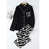 Spring / Summer Black New 100% viscose long-sleeved trousers ladies pajamas suit simple style long pajamas women's home service