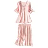 Summer new style Satin silk pajamas women short-sleeved shorts sexy lace 2 piece/sets sleep wear